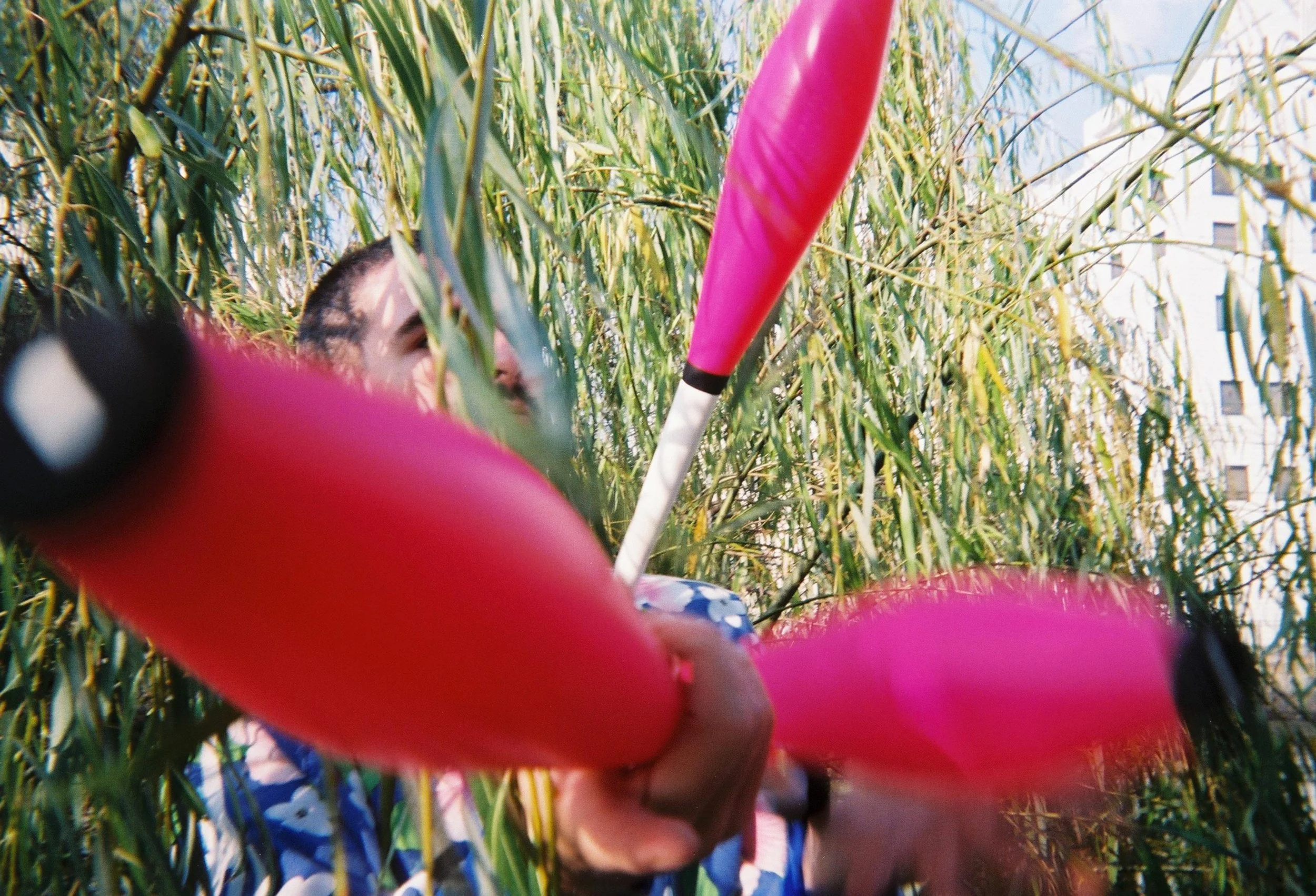 Wes Peden designs juggling to perform in space stations and parking lots. He has performed in over 25 countries including Japan, Israel, Australia, and Iceland. His energetic, complex, and playful juggling style has won him awards from the International Juggling Association and the festival Cirque de Demain. Wes takes inspiration from Sumo wrestling, fast-food packaging, and 1950´s playgrounds.